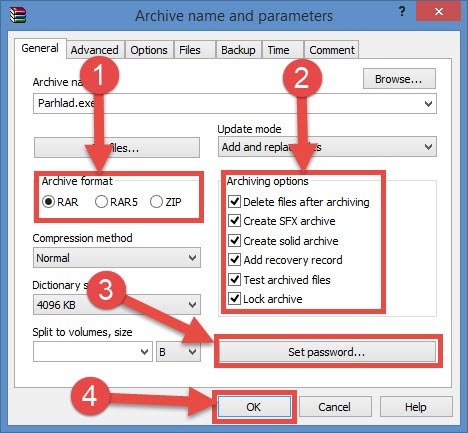 STEP-3. Add to archive par click karne ke baad apke samne archive ke option khul jayege. Usme aap Genral coloum par click kare or archive format RAR ya ZIP par hi tick rehne de uske baad Archiving Option me aap sabhi par tick kare or tick karne ke baad apko set Pasword par click karna hai, do baar password type karke ok par click karde or sbse last me ok par click kare apka folder archive hona start ho jayega 100% hone tak wait kare, jaise hi 100% pura hoga folder ka look change ho jayega Automatic, matlab Ab apke folder par password lag gya hai.