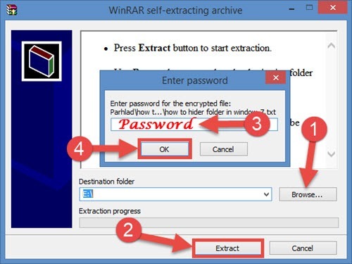 STEP-5. Ab aap soch rahe honge ki apni file ko bahar kaise nikale password protected se toh wo bhi bta raha hu apko. file bahar nikalne ke liye ap us folder par double click kare, ab apse pucha jaega kaha extrect karna chahte hai file toh ap file ki location de dijiye or extract par click kare, ab apse password pucha jayega password dale or ok par click kare or kuch hi der me apka folder bahar aa jayega. Ab aap password protected ko delete kar sakte hai agar apko password protected folder ni chahiye toh, mera kehne ka matlab hai aap kisi ek folder ko hi rakhe kyoki extract karne ke baad 2 file ban jati hai.