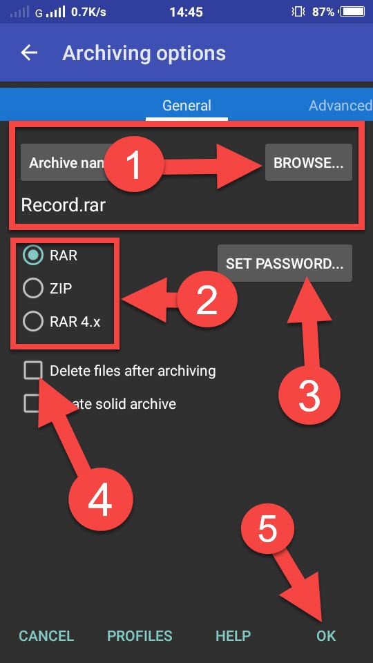 (iv). 4th option me apko ek option dikhai dega DELETE FILE AFTER ARCHIVING iska matlab hai ki agar aap apni file ko zip hone ke baad delete krna chahte hai toh is option ko tick kar de, or agar aap apni file ko zip hone baad bhi apne mobile me file ko rakhna chahte hai hai toh aap tick na kare.